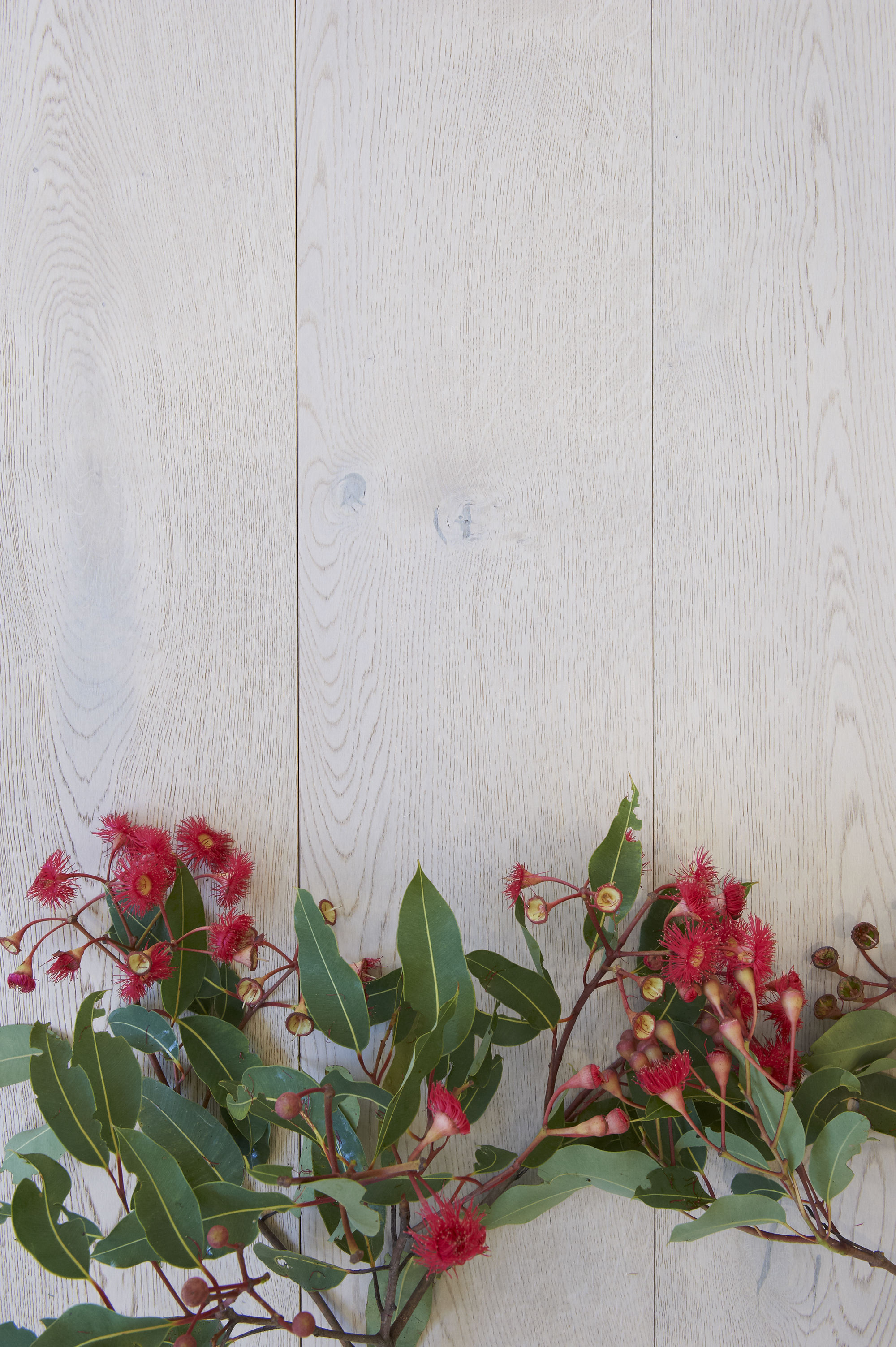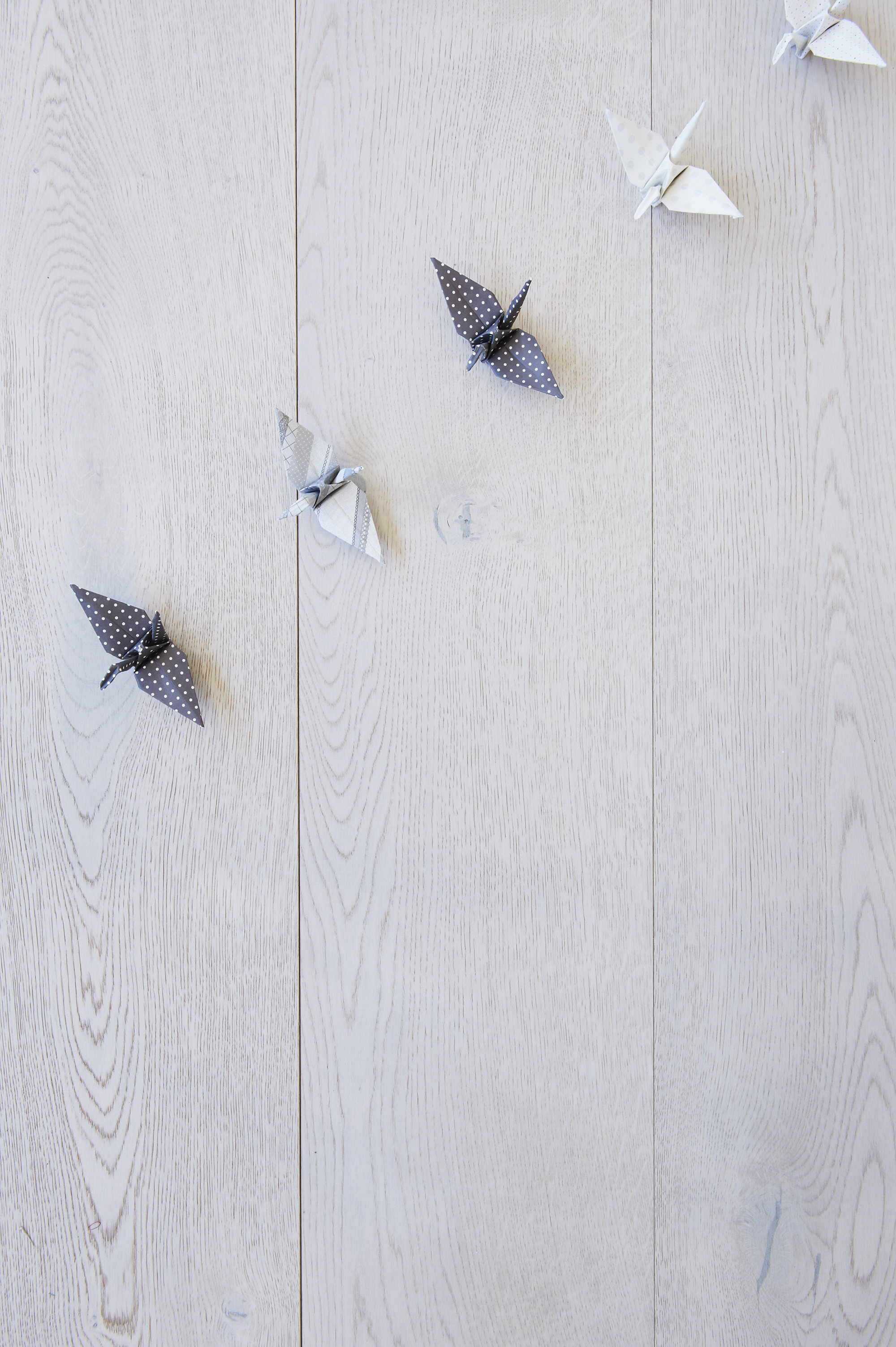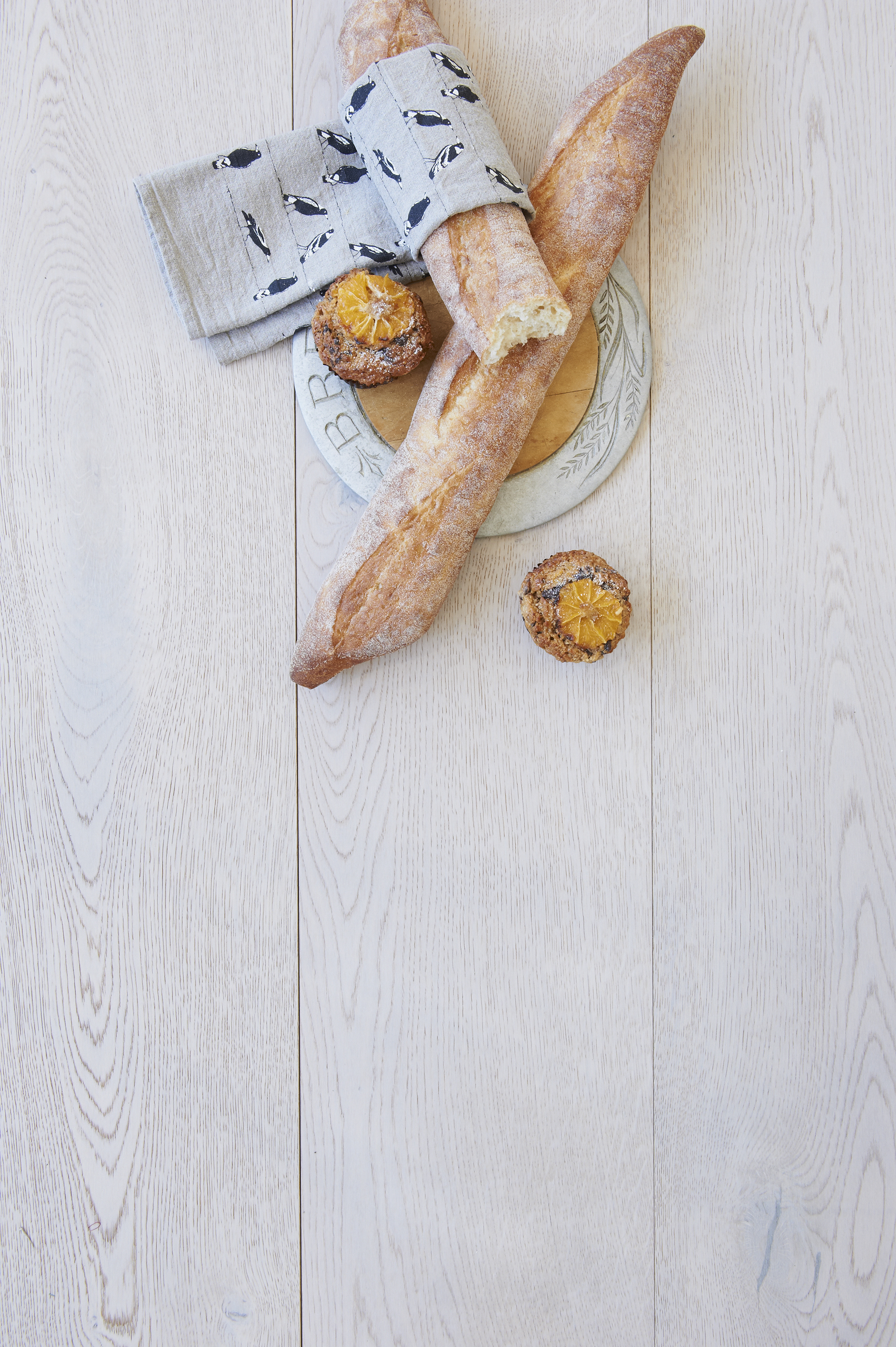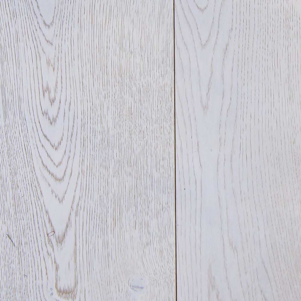 An almost opaque white finish that still shows the fine grain, knots and veining of French Oak, then lightly brushed to deepen and highlight the grain.