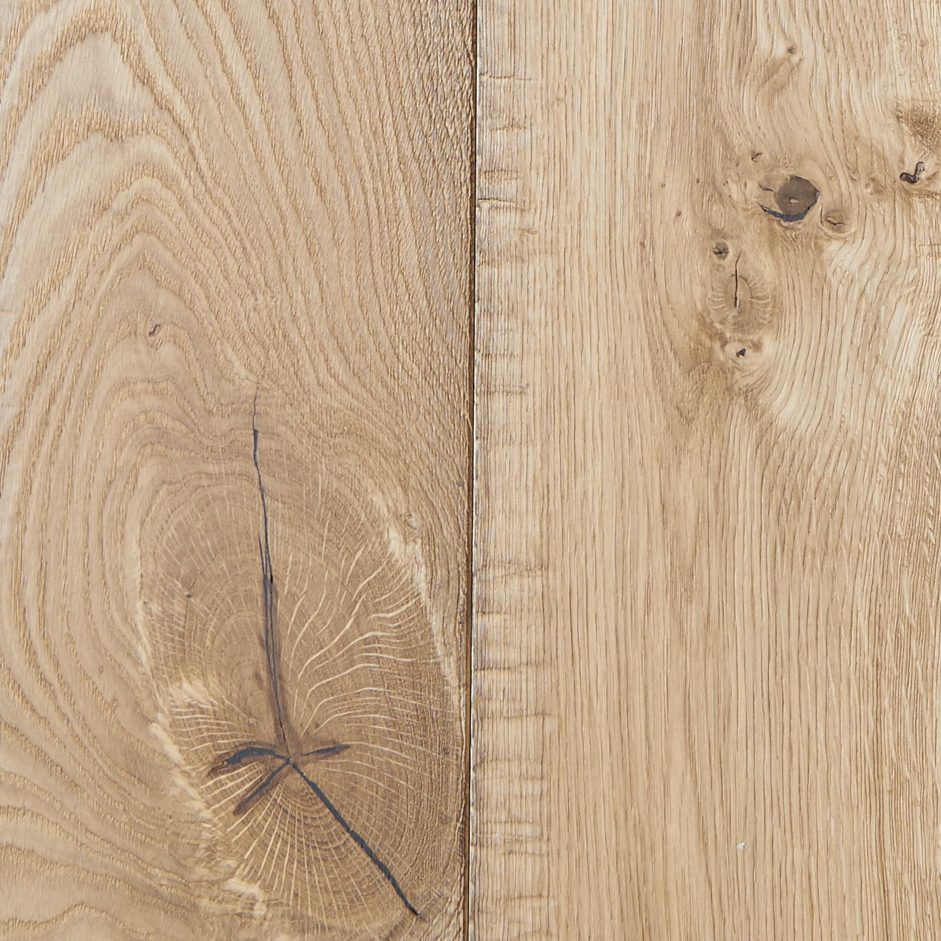 Natural colour and unstained, hand finished with a rustic edge and brushed accentuate the grain