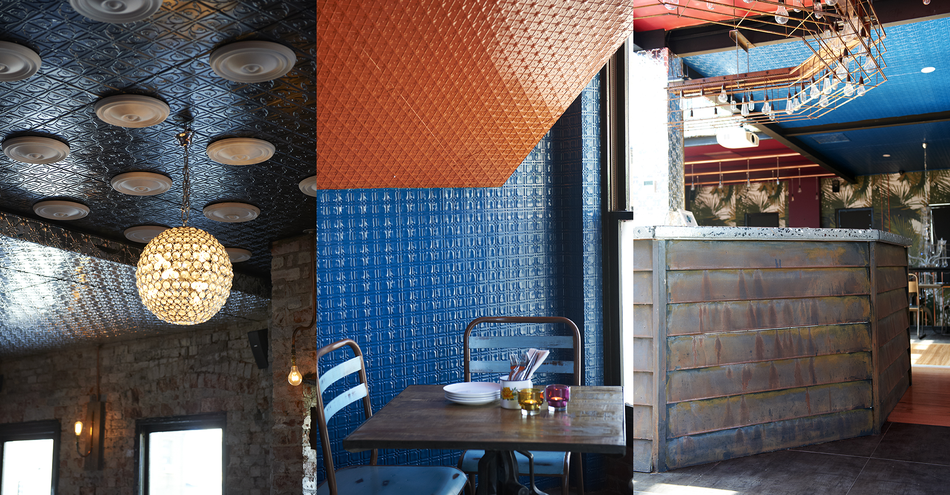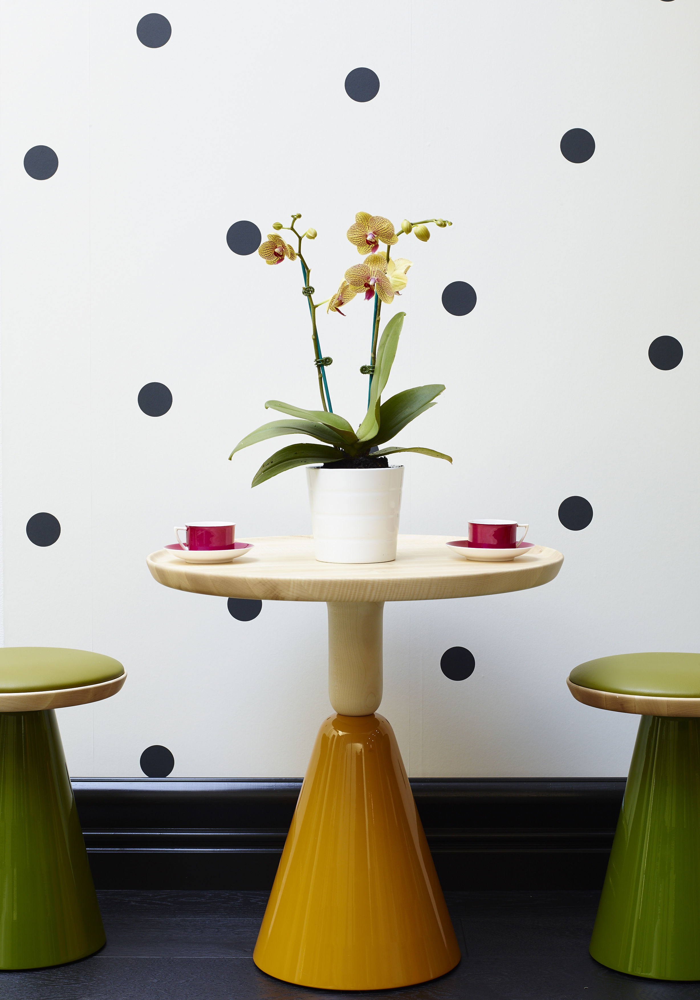 On timber and ironwork, Porter's Aqua Gloss Enamel in Alpen. On wall, Porter's Stone Paint Fine in Ramshead.