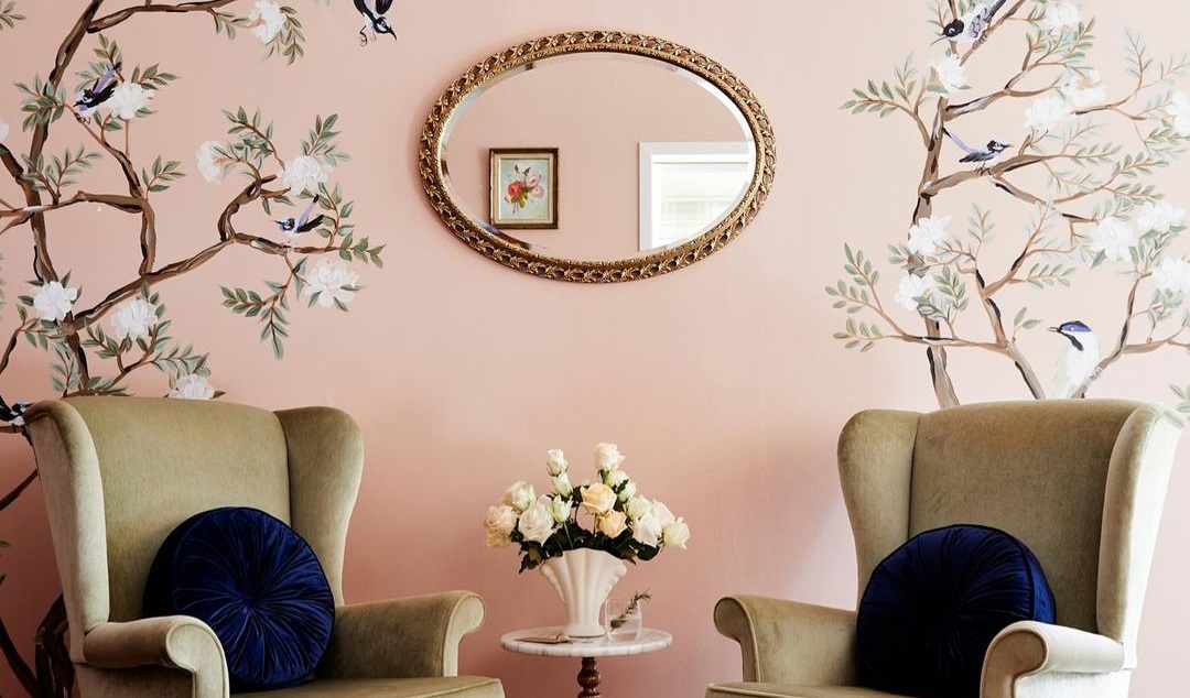 A beautiful rose and bird mural features in one of the rooms, painted using Porter's Paints by artist Leah Fraser.